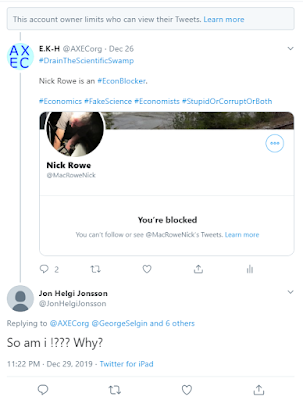 Being incompetent scientists, i.e., being stupid or corrupt or both, economists simply ignore refutation. This defect is well known: “In economics we should strive to proceed, wherever we can, exactly according to the standards of the other, more advanced, sciences, where it is not possible, once an issue has been decided, to continue to write about it as if nothing had happened.” (Morgenstern 1941)