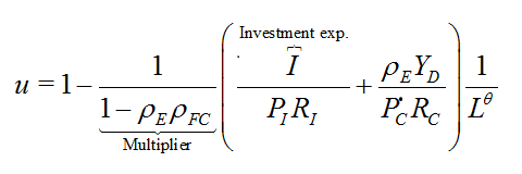 (i) An increase in the expenditure ratio ρE leads to higher employment L (the Greek letter rho = ρ stands for ratio).